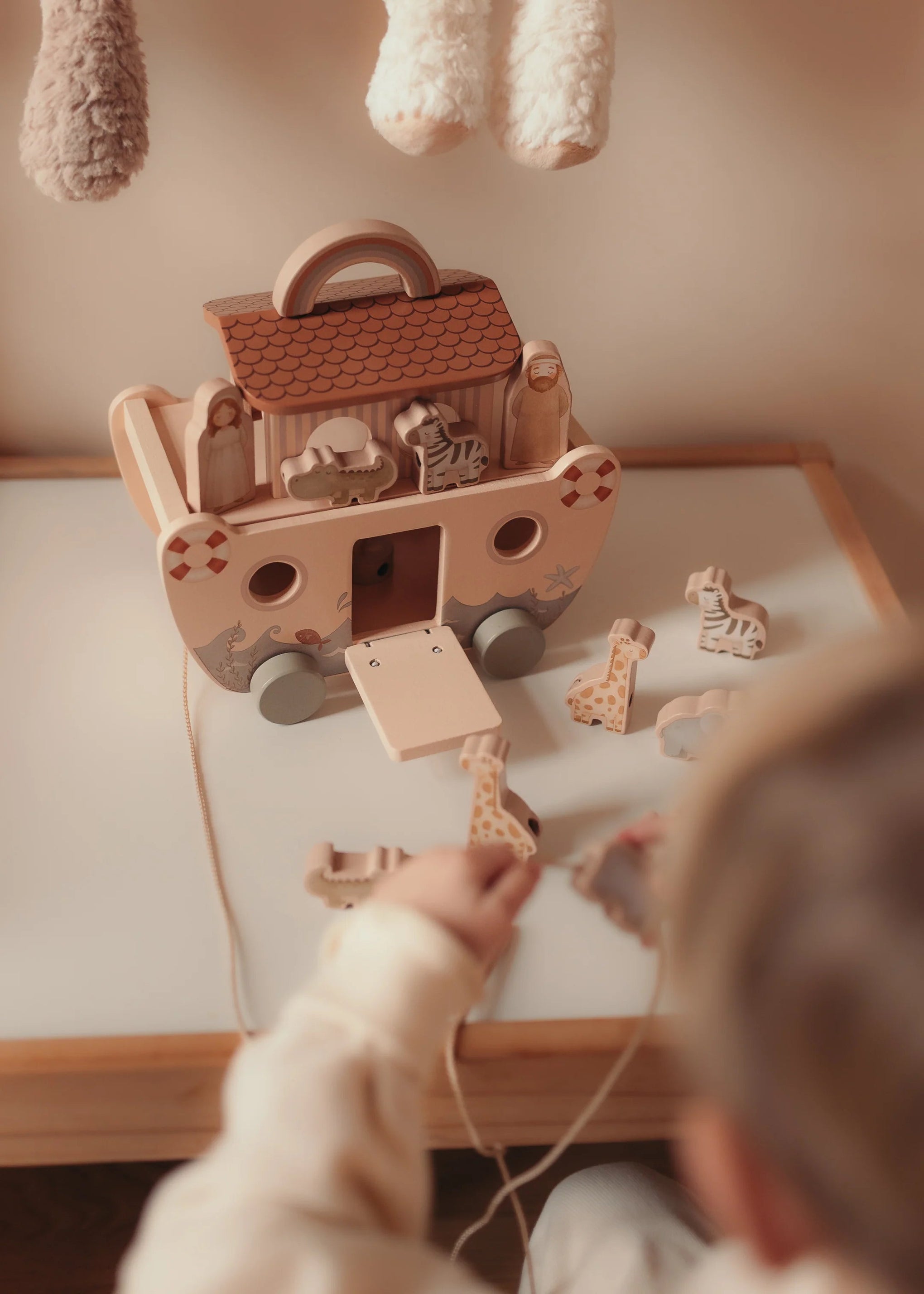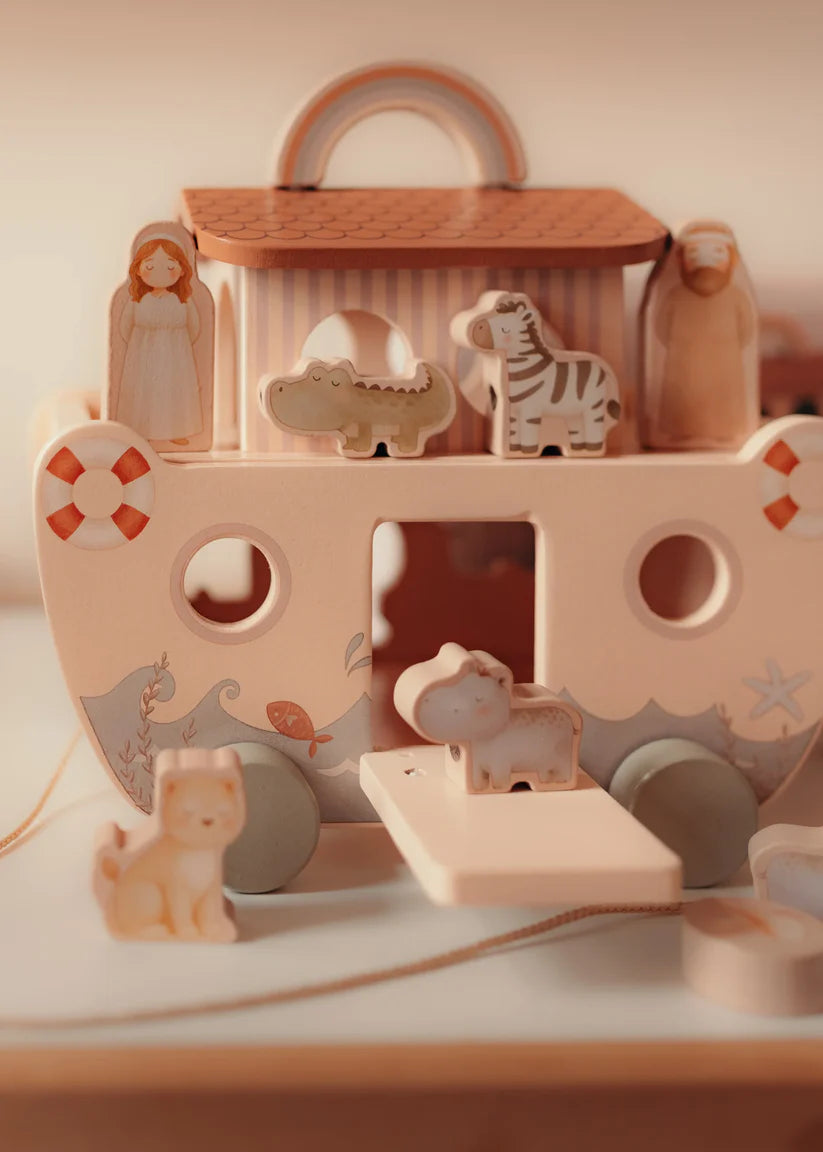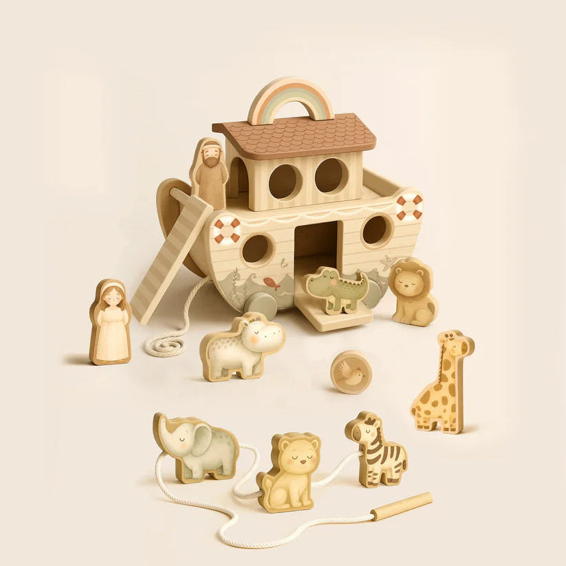 Arche de Noé en bois avec animaux – Jouet d’éveil 18 mois