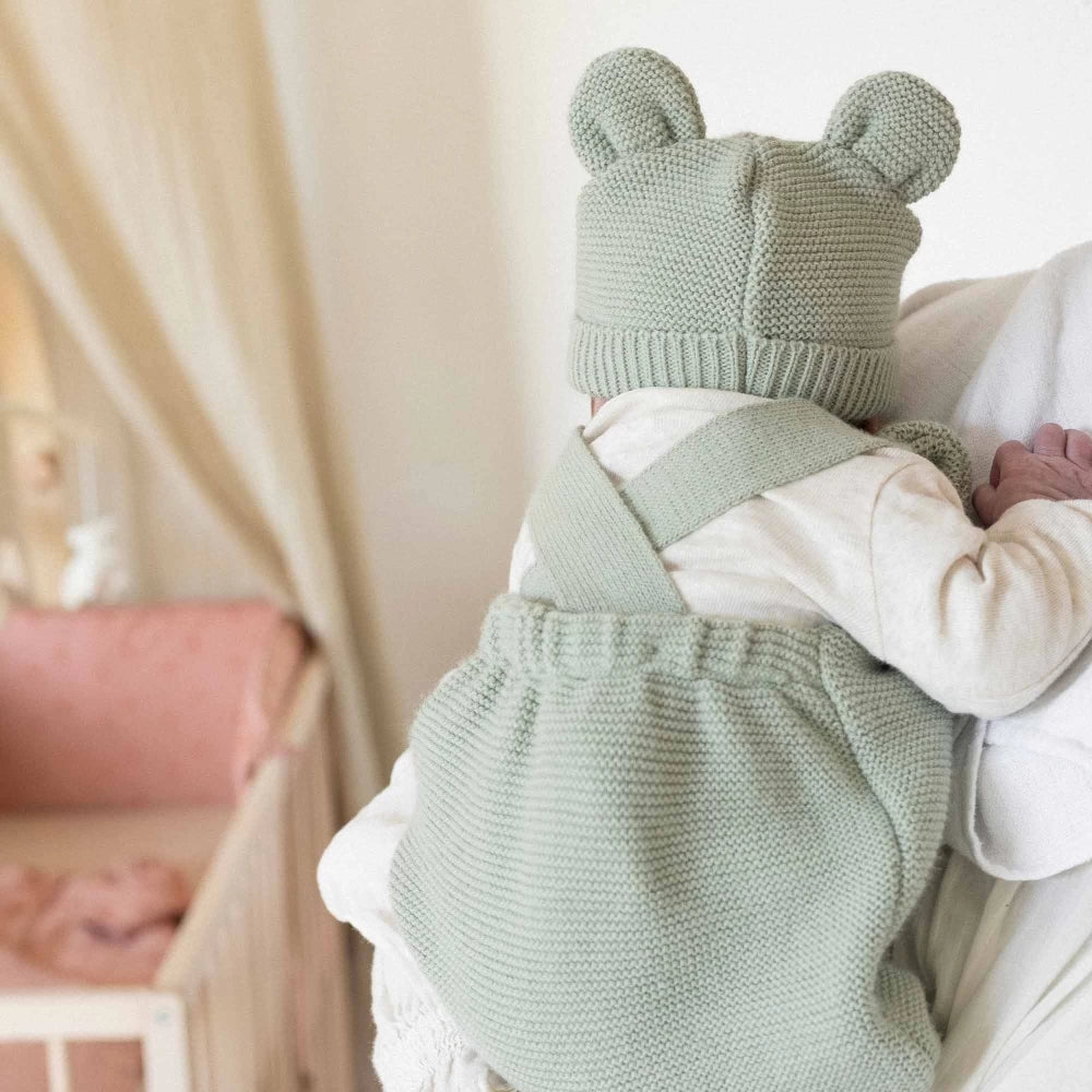 Bonnet Ă oreilles en maille olive