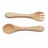 Lot de couverts bois et silicone pour bébé.