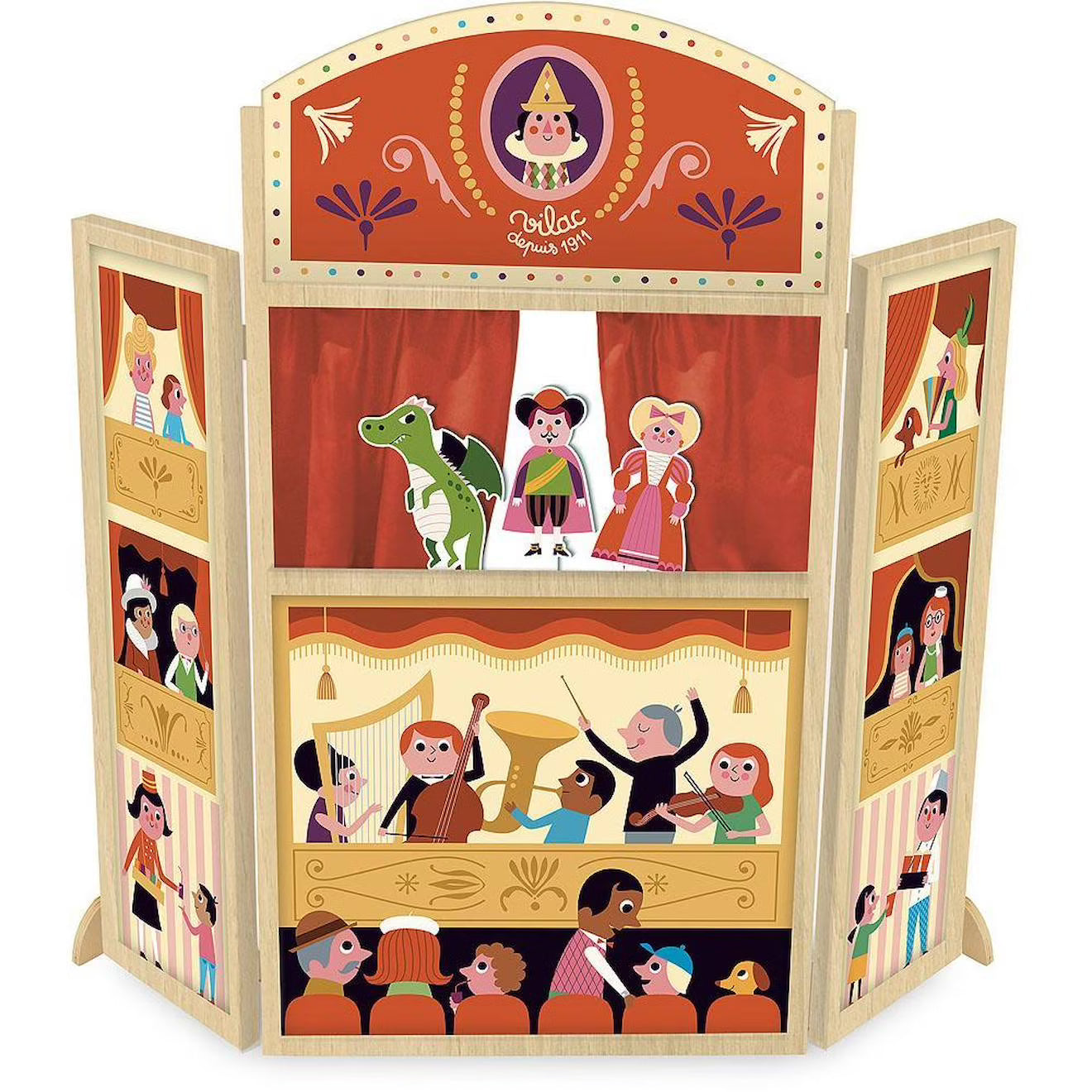 Mon joli Théâtre de marionnettes en bois rouge – dès 3 ans